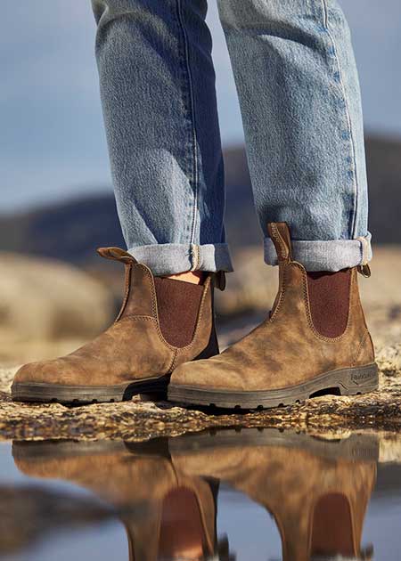 Classics for a reason. Renowned for legendary comfort Blundstone's signature #585s deliver all the durability and outstanding shock absorption with every step.  The supple Rustic Brown water-resistant waxed nubuck uppers will mold to your foot for that worn-in feeling. Legendary comfort, timeless design.